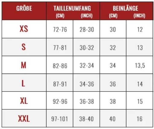 Shorts Größen Tabelle